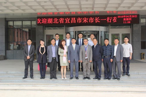 2016年4月28日,湖北省宜昌市市委常委、常務(wù)副市長宋文豹,宜昌市政協(xié)副主席、市財政局黨組書記、局長徐煒等一行10人在湖北銀豐鼎誠公司總經(jīng)理宋現(xiàn)收的陪同下,赴銀豐集團(tuán)參觀考察。山東銀豐投資集團(tuán)董事