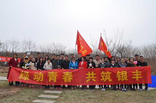 2016年3月12日,銀豐集團工會、銀豐集團團委、銀豐地產集團團總支聯(lián)合主辦的“綠動青春、共筑銀豐”義務植樹活動在銀豐唐郡圍子山舉行。銀豐集團副總裁彭秀玲、青年員工等60余人參加。活動更吸引了眾多銀豐地產新老業(yè)主前來參加。