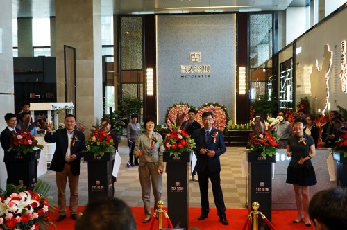 2018年5月20日,銀豐·玖璽城-城市展廳開放盛典在銀豐財富廣場A座優雅啟幕。銀豐地產集團執行總裁劉祥女士、副總裁李美萱女士、副總裁李銘先生及銀豐玖璽城項目總經理張曉鵬先生等嘉賓出席開放盛典并參與剪彩儀式。