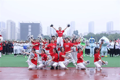 隨后,由物業集團和酒店公司為大家帶來的啦啦操表演燃爆全場,活潑的身影,燦爛的笑容,是對青春最美好的詮釋!